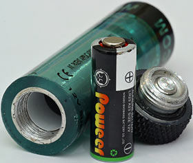 Each unit is powered by an inexpensive 12V (23A) alkaline battery which is