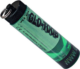 GLO-TOOB is cylindrical, measuring 70mm x 19mm (2.75" x 0.75")