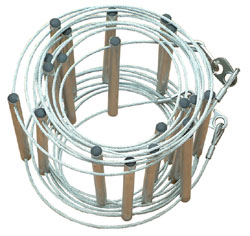 Standard ladders are available in Lightweight and Normal weight construction. Normal weight ladders are constructed of 4mm galvanized wire while the lightweight ladders are manufactured using 3mm wire. If weight and bulk are primary concerns, consider the lightweight ladders and wider rung spacing. Ladders with screw link terminations are configured to provide even rung spacing when connecting two ladders together.