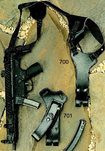 This system is designed for carrying a submachine gun under one arm and spare